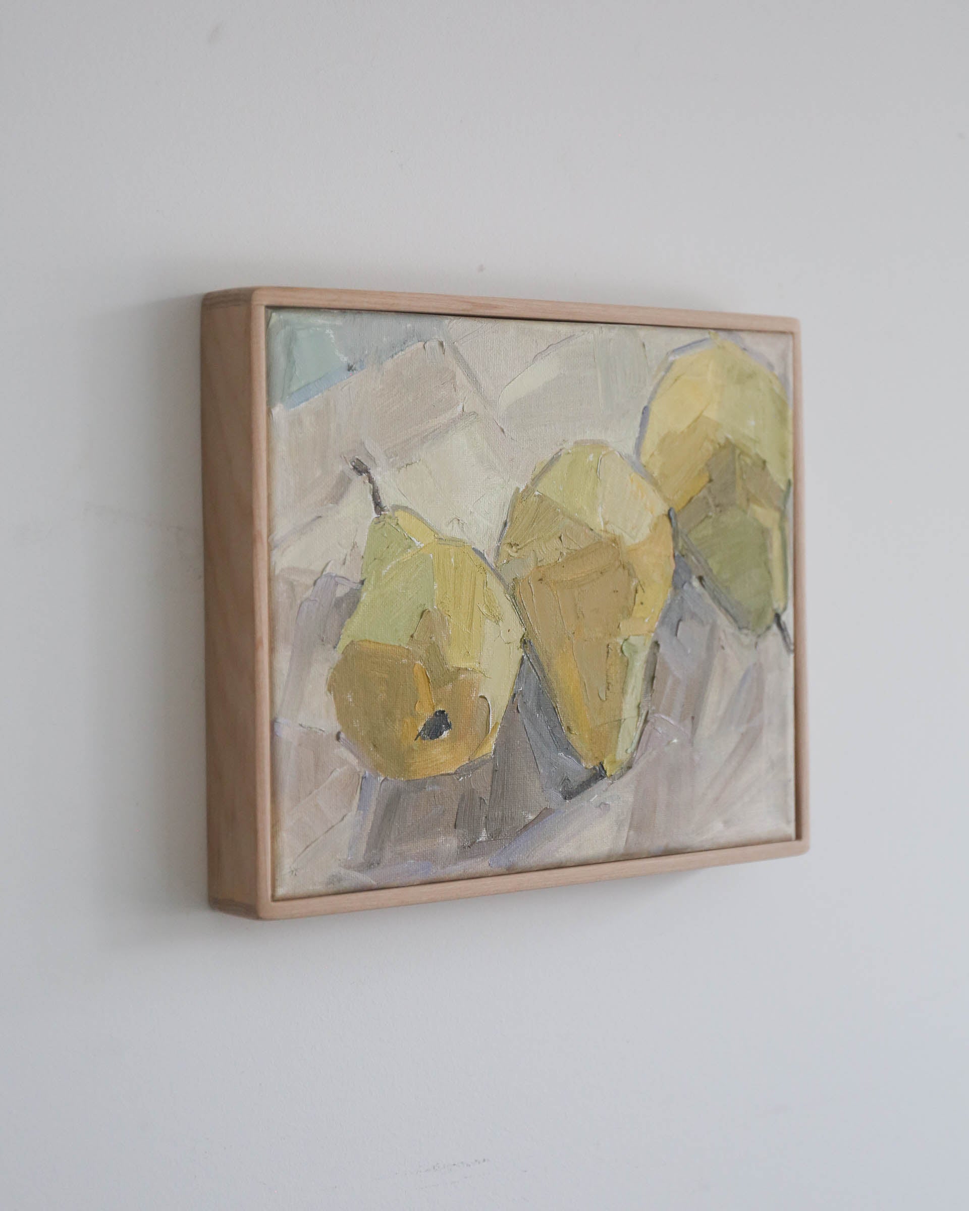 - original still life of three pears on a white napkin